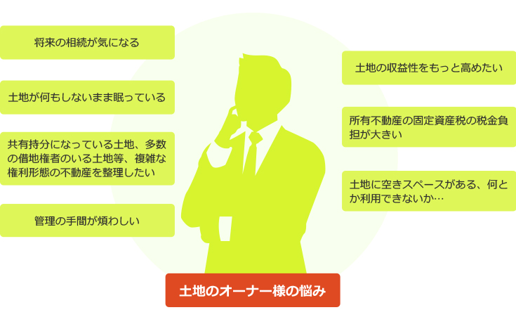 TKソリューション株式会社はご所有の土地を手放すべきかどうか、お客様にとって何が一番有効な方法なのかを考え、資産全体の最適利用という観点から土地活用をご提案致します。